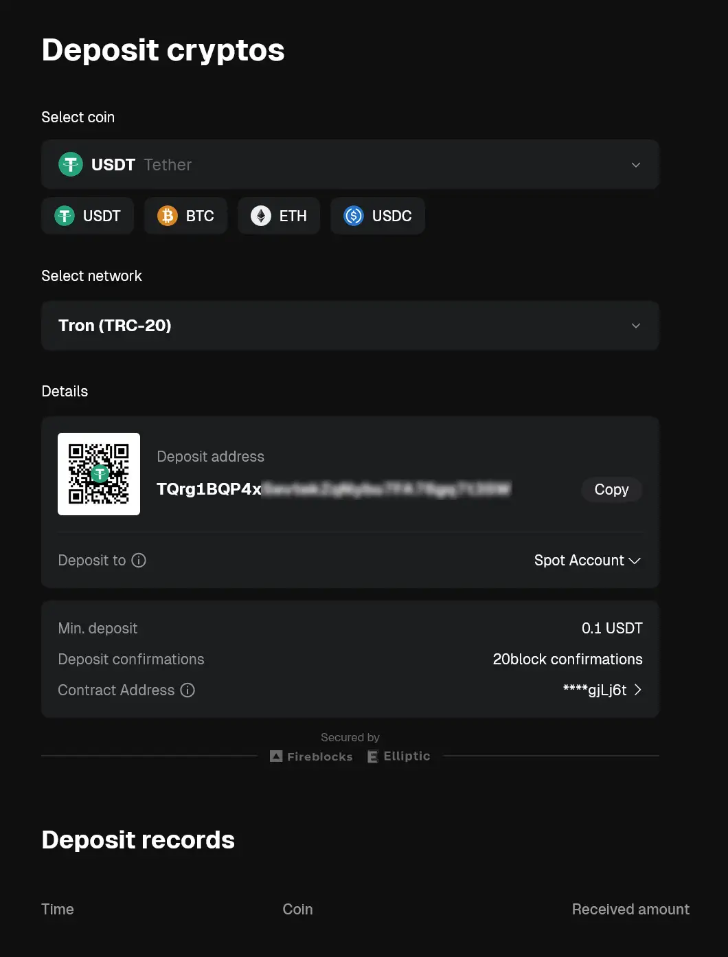 Just select your coin and the network. You will then receive a wallet address for that configuration.