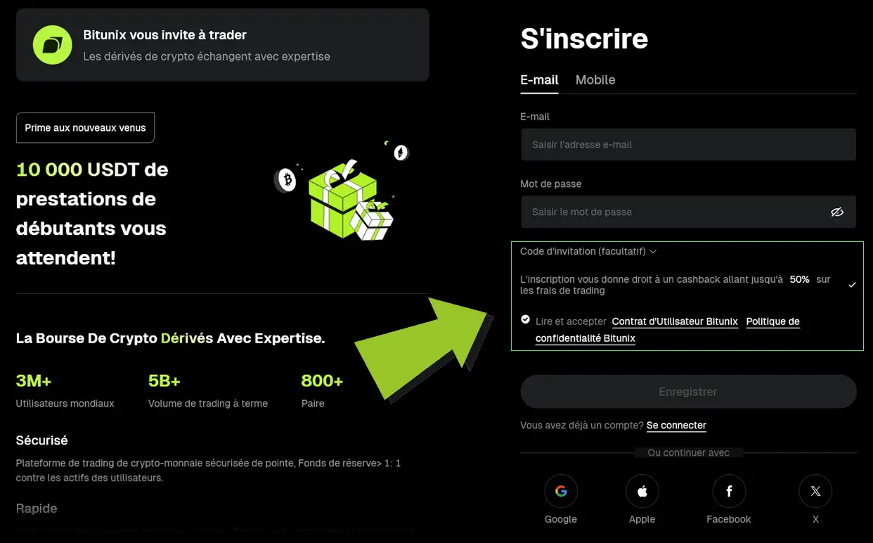 Il vous suffit de cliquer sur l’image ci-dessous, de vous inscrire sur Bitunix, et c’est tout ! Vous bénéficierez d’une réduction à vie de 50 % sur vos frais de trading.